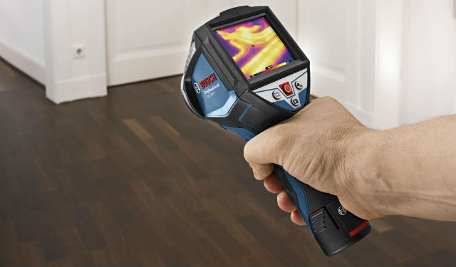 La caméra thermique GTC 230 C Professional donne un aperçu rapide des points faibles dans les installations de chauffage et électriques pour détecter les prises de courant et les fusibles en surchauffe. Le détecteur thermique GIS 1000 C Professional évalue également la température de surface, par rapport à la température ambiante, et l’humidité pour révéler les ponts thermiques et les zones à risque de moisissures en quelques secondes. Sur les images thermiques enregistrées à une résolution de 80 x 60, chacun des 4 800 pixels est un point de mesure. L’outil indique aussi automatiquement le pixel le plus froid et le plus chaud.