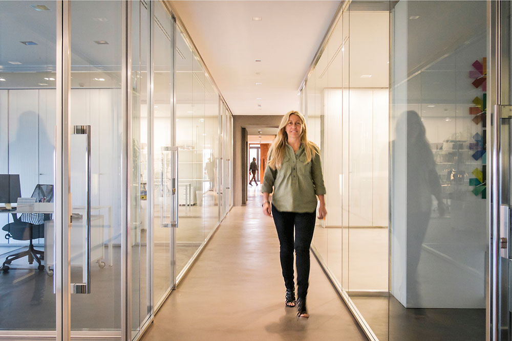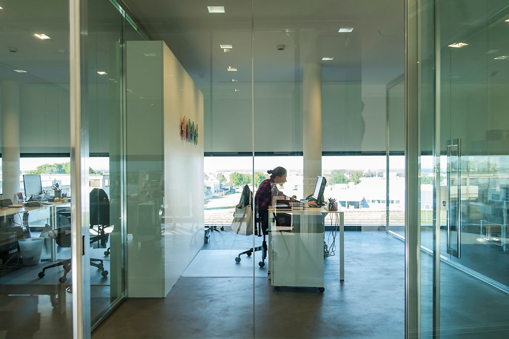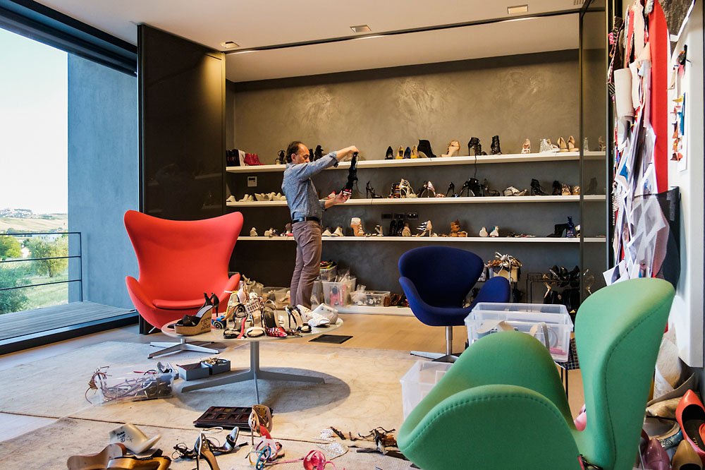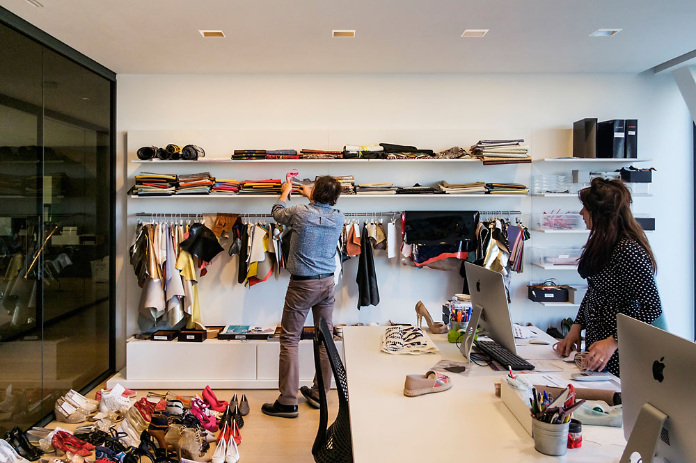 Depuis l’an passé, Le Silla dispose d’un nouveau bâtiment à Porto Sant‘Elpidio. Le complexe, construit sur les plans de l’architecte Ivan Palmini, regroupe non seulement les espaces de création et de fabrication des collections de chaussures, mais également l’administration et un magasin outlet de la marque. En opposition avec la collection de chaussures plutôt glamour, l’architecture du siège social se caractérise par son vocabulaire formel rectiligne, presque sobre, fortement inspiré de l’architecture moderne classique. Les bureaux, séparés entre eux par des parois vitrées, ainsi que le studio de design voisin, reçoivent la lumière du jour par de grandes surfaces vitrées toute hauteur, offrant ainsi une vue panoramique. Celles-ci créent une atmosphère aérienne, moderne et soignée.