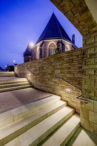 Ce parvis, pavé de briques rouges, s’étendant sur environ 5 100 m² est la « pièce maîtresse » de la commune. La kermesse annuelle et la fête traditionnelle du potiron se tiennent sur ce sol chargé d’histoire (l’édifice a été érigé au XIIe siècle). Hans-Georg Flick précise : « L’éclairage de places et d’ouvrages historiques est bien sûr quelque chose de tout à fait particulier. Les luminaires devaient souligner tout l’ouvrage, mais aussi mettre en valeur différents matériaux : le sol ou le grès de l’église. » Tout devait donc s’harmoniser ensemble. Mansour Rahmian, adjoint du chef de service de la commune Westerkappeln, explique que la mise en scène de l’ouvrage historique est une réussite : « Emporium a été installé près de projecteurs et de luminaires de sol, qui illuminent l’édifice religieux ; l’effet est très impressionnant. »