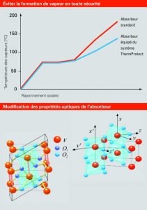 Viessmann, premier fabricant français de capteurs solaires thermiques avec son usine mosellane de Faulquemont, a en effet développé et breveté, en collaboration avec l’Institut de recherche Jean Lamour de Nancy, le Vitosol 200-FM à revêtement ThermProtect. Ce capteur solaire thermique ingénieux utilise l’effet “thermochrome”.