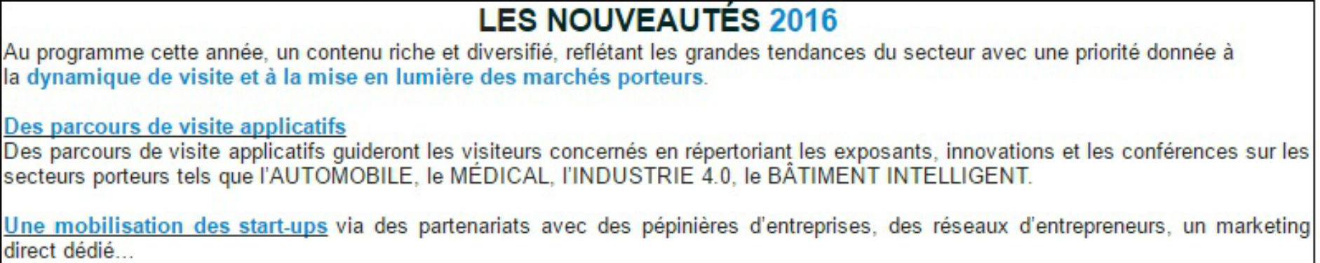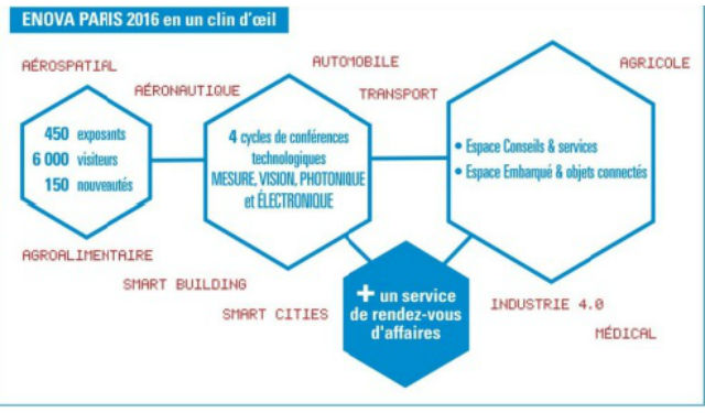 L’IoT et les objets connectés sont désormais omni présents et imposent l’électronique dans tous les secteurs de notre économie. ….fort de ce constat, ENOVA PARIS qui a toujours su évoluer pour s’adapter aux nouvelles mutations technologiques, propose une édition 2016 modernisée et portée par les nouveaux besoins de connectivité.