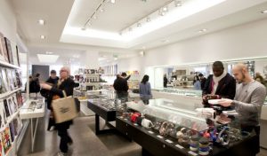 Le magasin est évidemment très diversifié : différentes mises en scène selon les espaces de vente, une galerie d’art intégrée pour des expositions temporaires et, au sous-sol, le Water Bar, petit espace dédié à une gastronomie simple et fine. Mais plus encore, le lieu vit toujours au rythme de l’air du temps : de nouveaux articles viennent régulièrement enrichir l’offre ; vitrines et îlots de décoration sont refaits chaque semaine.