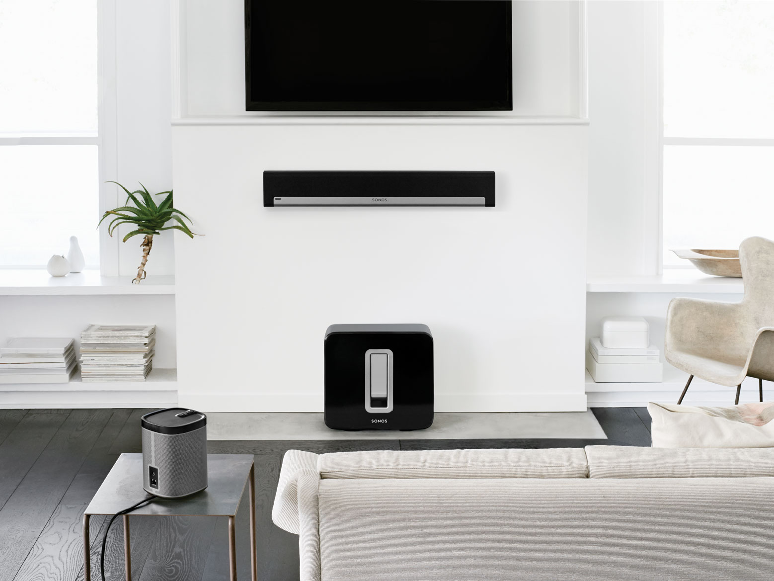 Système 5.1, Sonos composé d’une Playbar, d’un caisson Sub et de 2 Play 1