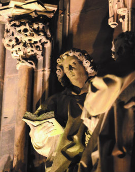 « L’éclairage depuis le sol doit en révéler les volumes et souligner, entre autres, son exceptionnel baldaquin. La position initiale des appareils est cruciale car elle doit accompagner au mieux le statuaire en maîtrisant les ombres projetées, comme par exemple ne pas avoir un visage coupé par l’ombre d’un bras, ou un drapé surexposé vis-à-vis de l’expressivité des visages » Jean-Yves Soëtinck.