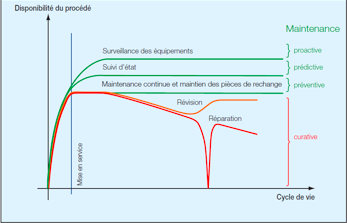- La maintenance moderne se réalise avant tout informatiquement par une analyse des informations disponibles tout en conservant les équipements sous tension et l’unité en exploitation. Néanmoins, les arrêts restent indispensables mais sont optimisés et des actions ciblées peuvent être planifiées.