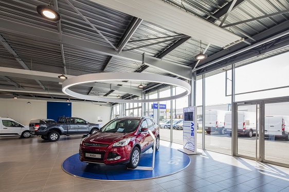 TRILUX et la technologie LED permet aux concessions du réseau Ford en France de bénéficier de plusieurs avantages : l’indice de rendu des couleurs élevé garantit une reconnaissance optimale des couleurs et des matières, et l’alliance de la bonne LED, d’un réflecteur efficace et d’une gestion thermique intelligente permet de réduire la consommation d’énergie.