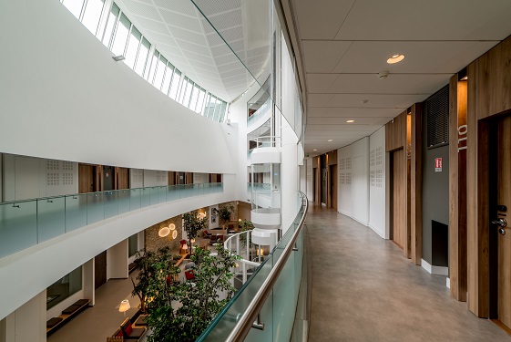 Piloté par GTC, l’optimisation par gradation de l’éclairage artificiel apporte un confort visuel soigné. Enfin, l’ambiance thermique et les apports solaires des parties communes sont pilotés par des sondes d’ensoleillement extérieures et de températures intérieures.