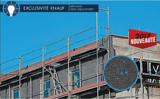 Dès 2017, les isolants Knauf XTherm ITEx Sun + sont aisément identifiables en façade grâce à des billes bleues de PSE intégrées dans les panneaux. Cette garantie témoigne de l’engagement de Knauf quant à la traçabilité, la fabrication française et la qualité de ses solutions développées à base de matières premières certifiées soumises à différents contrôles (internes et par des organismes externes). Avec la présence de billes bleues de polystyrène, les solutions d’ITE Knauf s’avèrent reconnaissables à chaque étape du chantier.