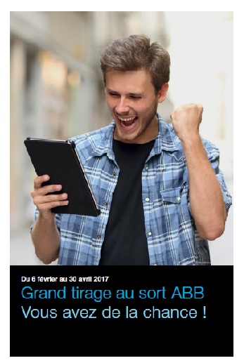ABB invite ses clients à saisir leur chance en participant au Grand Tirage au Sort ABB. Du 6 février au 30 avril 2017, dès 250€ d’achats de produits sur toute l’offre Résidentiel ABB, les installateurs électriciens peuvent tenter de remporter un des 6 lots mis en jeu.