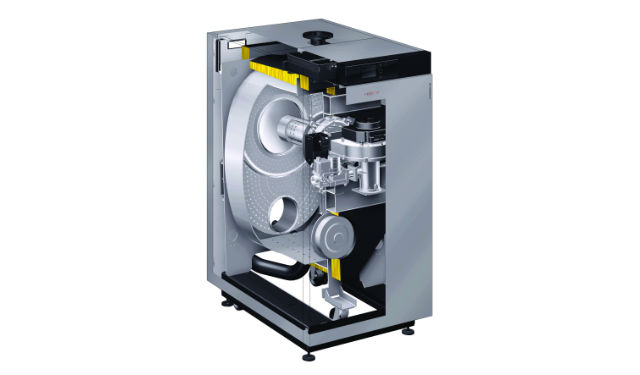 Autres atouts de la Vitocrossal 100 Cl1, son volume d’eau et sa faible perte de charge hydraulique qui autorisent un fonctionnement sans débit minimum d’irrigation et sans pompe de charge. Soulignons que cet avantage se traduit aussi par des économies directes puisque les coûts d’utilisation et d’entretien de la pompe sont évités.