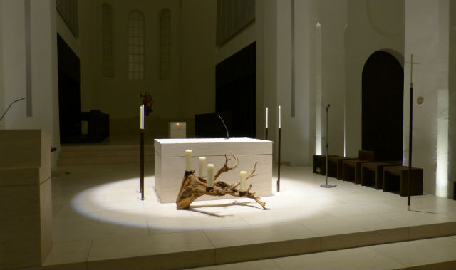 Autel de l‘église St. Moritz à Augsburg (D) en Novembre 2013, après rénovation par l‘architecte John Pawson et l’agence d’éclairage Mindseye.