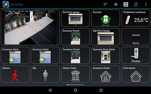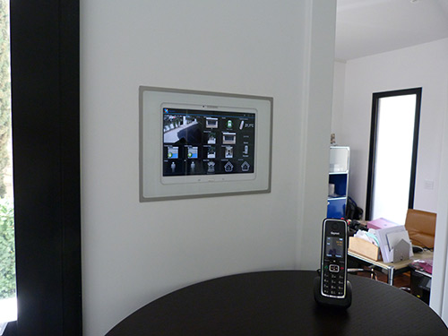 Trois tablettes murales et une tablette mobile – en résolution Full Hd pour profiter au mieux des cameras 2MegaPixels – sont dédiées au pilotage de la domotique. Basée sur l’application développée par la société EvertyGo, cette interface qui regroupe l’ensemble des fonctionnalités de la domotique est entièrement configurable par les propriétaires.  Elle est aussi présente sur leur smartphones et tablettes. Des drivers spécifiques ont été spécialement développés par DomoPad pour couvrir la totalité du matériel installé.