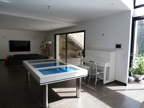 Tout a démarré en 2013, au moment du dépôt du permis de construire, lorsque Philippe Roux, Directeur du bureau d’études DomoPad a été contacté par les futurs propriétaires. Après plusieurs séances passées à recueillir les besoins des clients, une solution totalement ouverte et évolutive s’est rapidement imposée. L’architecture repose exclusivement sur un maillage RJ45 Cat 6/7 supportant le réseau informatique (Ethernet), MultiMedia (Grade 3) et Domotique(Entrées-Sorties). En utilisant exclusivement des équipements IP, le système dit « Full IP » s’affranchit de bus propriétaires et fait cohabiter les leaders de chaque domaine. Résultat, un système extrêmement performant, capable de répondre à toutes les demandes avec un coût de revient divisé par deux. Cet écosystème ouvert est aujourd’hui reconduit sur tous les nouveaux projets. Une solution qui va naturellement continuer à évoluer selon les besoins des propriétaires par l’intégration naturelle de futurs objets communicants.