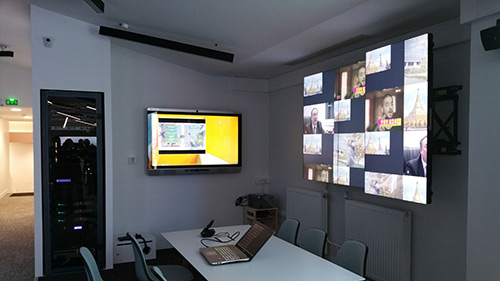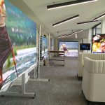 Partage d’informations, travail en groupe, salle de contrôle ou multisite avec écrans interactifs et totems d’accueil attendent les intégrateurs pour définir les éléments des projets à venir.