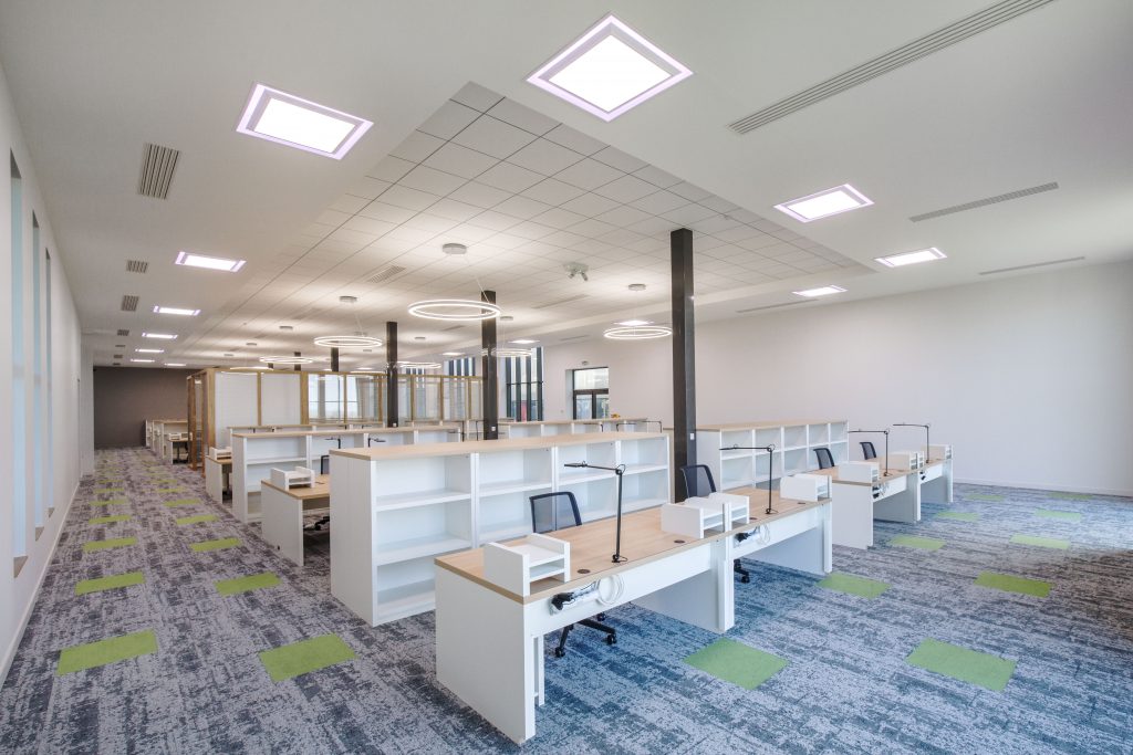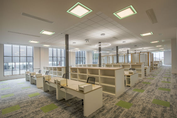 Under the mezzanine floor, in the workspace, Ixapack opted for RZB’s Pascala Round LED embedded downlights with a UGR of 17.