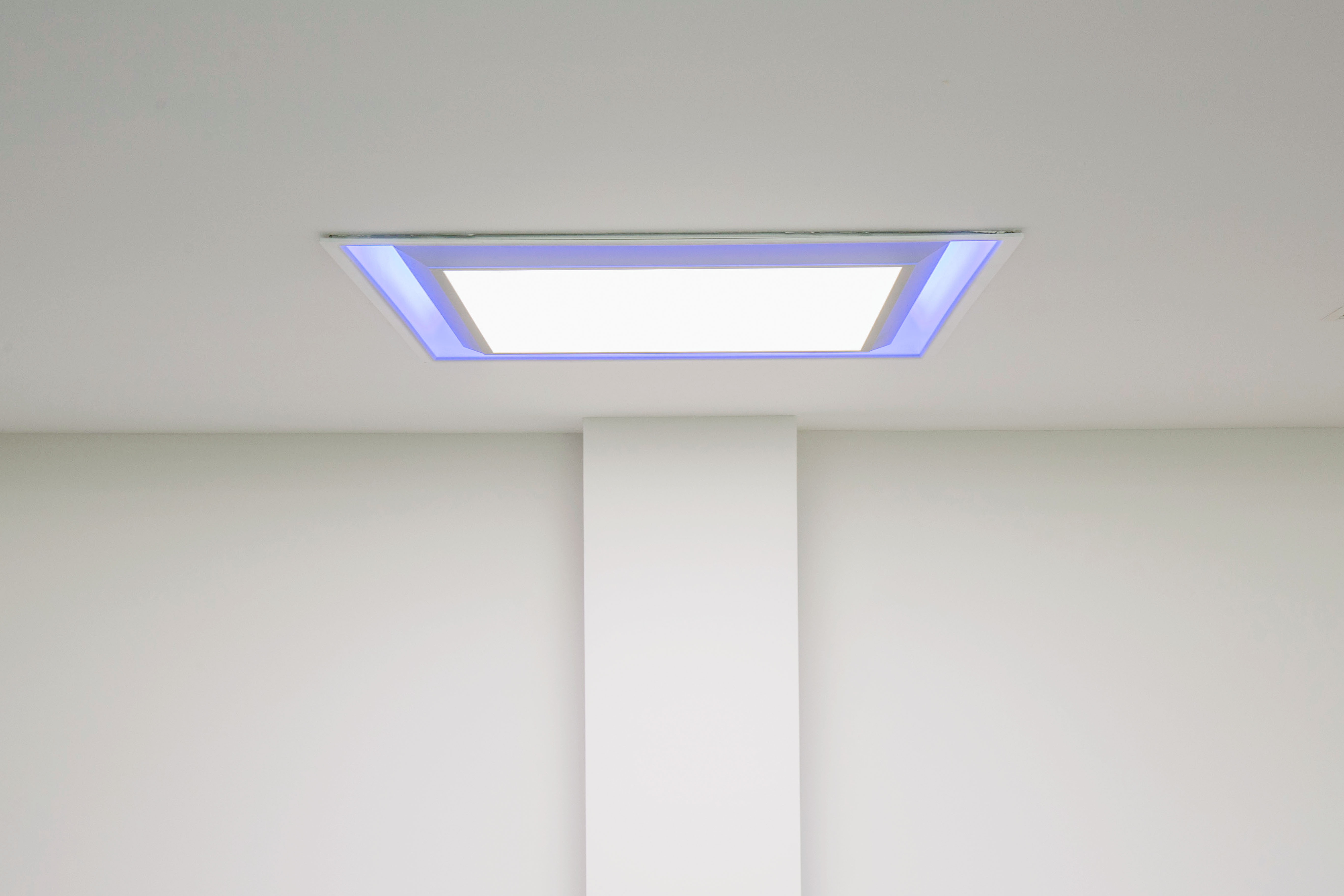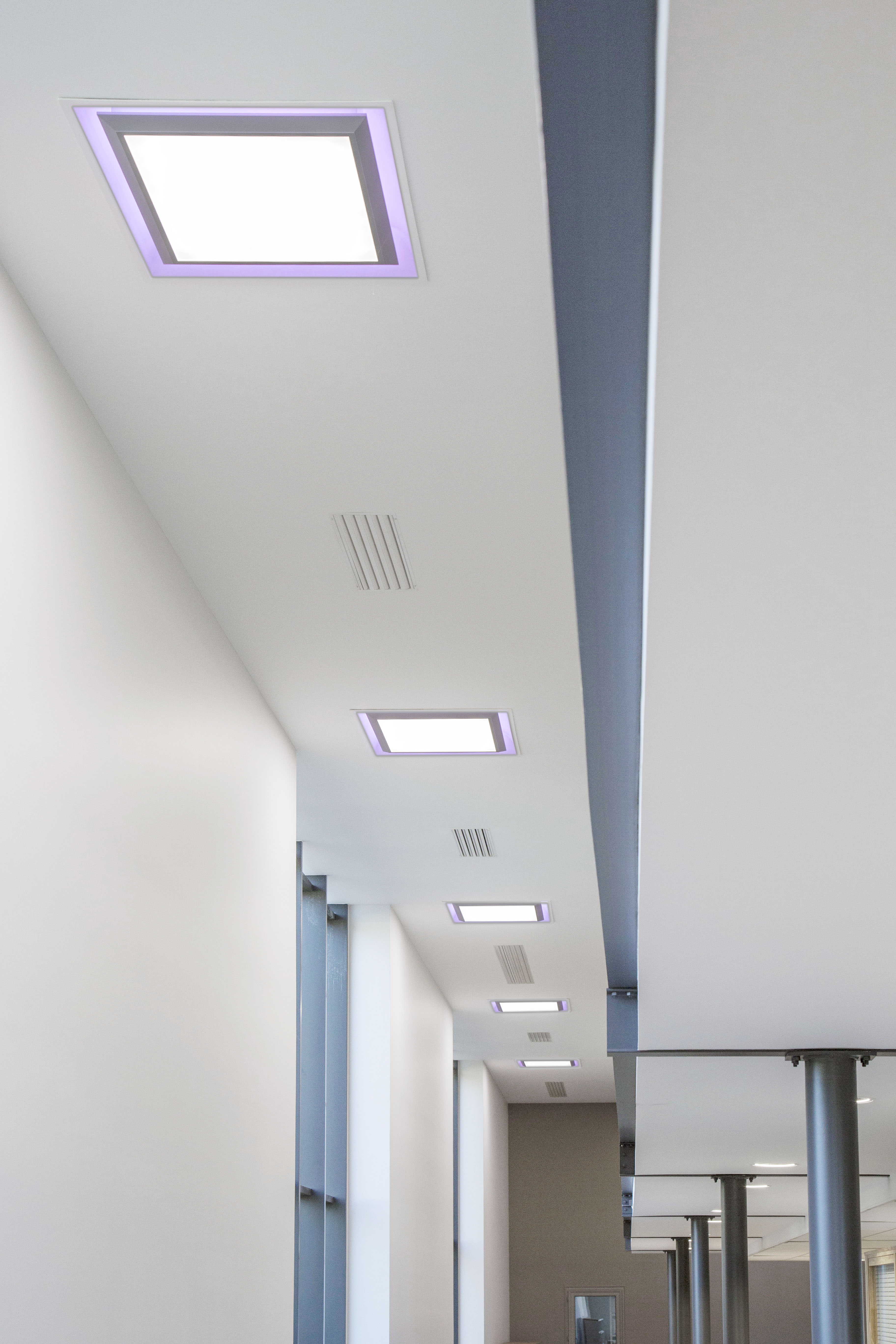 The entire lighting system can be controlled with two tablets, thanks to the RZB Professionnal light control +³ application. This solution allows the users to manage 64 separate luminaires, divided into 16 different groups as well as to program 16 light scenarios. “We created different lighting scenarios according to the client’s specifications and this solution offers regulation according to daylight and occupation”, explains Jörg Franzke, head of Marketing and Support on light management, RZB. The application manages colour temperature dimming, the circadian cycle and the change of the LED strip around the Econe luminaires. With this lighting solution management that follows the circadian cycle, the aim of the system is to give employees a sensation of well-being and in this way to increase their concentration level.