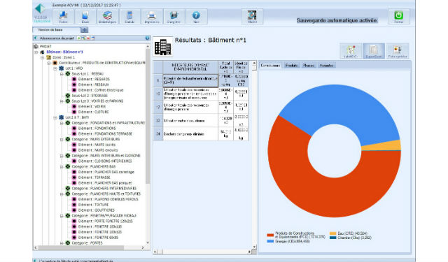 T. M. – Notre module dédié à l’ACV est connecté à la fois au module logiciel RT2012 et à la base INIES pour injecter les fiches et nomenclatures des produits de construction et des équipements. Le calcul en résultat est conforme à la norme EN 15978 et reprend, en sus des produits, les consommations d’énergie, d’eau et le volet chantier. Le cycle de vie est basé sur une période de 50 ans, et les résultats sont présentés par phase, lot et sous-lot et il est possible de comparer plusieurs variantes d’un même projet.