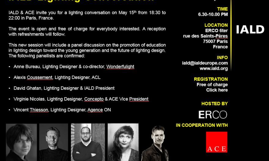 IALD organise, en collaboration avec l’ACE une conférence discussion dans les locaux d’ERCO, 6ter rue des Saints Pères, 75007, Paris, mardi 15 mai.