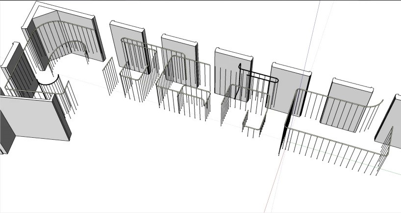 Les gouttelettes de verre varient en hauteur, en densité et intensité. Elles soulignent l’unité des trois espaces.