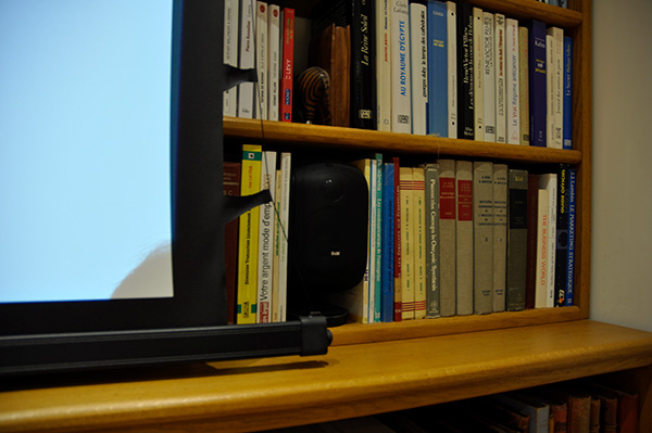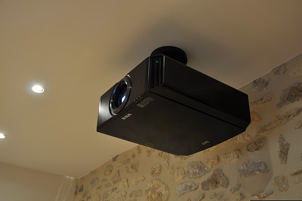 Le système est complet avec un écran, un vidéoprojecteur, un lecteur Blu-ray, un décodeur satellite, mais surtout une seule et unique télécommande. Pas besoin d’appuyer sur le bouton On, il suffit de choisir son activité : Blu-ray ou Satellite, et tout le système s’allume automatiquement. La console de jeux n’est pas encore installée, mais tout est prévu avec notamment une prise HDMI en façade.