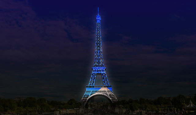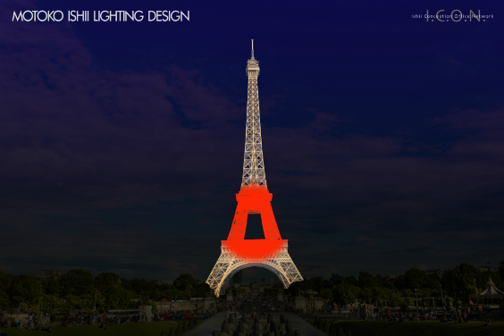 Le Japon est surnommé en français « le pays du Soleil-Levant ». Ce symbolisme solaire, représenté sur son drapeau au graphisme épuré, ainsi que son expression artistique exotique ont été très appréciés en France et dans les autres pays occidentaux depuis la fin du XIXe siècle. Emblème fort et sacré, le blanc cher à l’esthétisme japonais sera déposé en fond lumineux sur le monument, puis un point rouge progressera doucement du bas vers le haut, tel le soleil. Ce tableau titré « La Tour du Soleil Levant » marquera le lever de rideau de la performance. « Dans le chapitre Liberté, nous exprimons l’échange, le dialogue entre la France et le Japon, à travers un programme de lumières bicolores, de faisceaux croisés… qui créeront le maillage de deux nations interagissant librement, un maillage tricoté par l’amitié », confie Akari-Lisa Ishii. Ces dessins, tissés par des appareils d’éclairage dernier cri, produiront une image forte, marquante et dynamique sur toute la surface d’une des faces de la tour Eiffel.