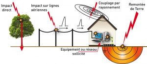 La foudre est un phénomène électrique complexe et ses effets sur les installations peuvent être d’ordre thermique dans les conducteurs et matériaux, mais aussi des montées de potentiel et amorçages (y compris loin du point d’impact) ainsi que des effets électromagnétiques et électrodynamiques. Des risques dont il faut absolument se protéger dans les installations sensibles ou vitales par la mise en œuvre de paratonnerres et de parafoudres.