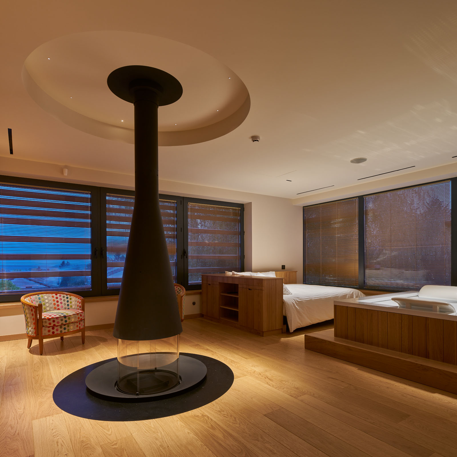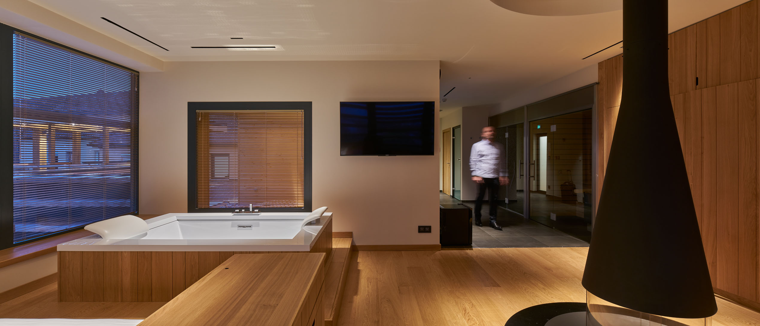 « Nous avons basé notre conception sur l’hypothèse que les invités qui se sentent bien reviendront », explique l’architecte et designer d’intérieur Claudio Carbone. Chacune des pièces en forme de loft de la nouvelle Tour Spa dispose de grandes fenêtres et de balcons. Ainsi, l’espace infini de la nature à l’extérieur est amené directement dans la chambre d’hôtel. L’éclairage est particulièrement important, comme le décrit avec passion Claudio Carbone. « Pour nous, la lumière est essentielle. Elle produit des couleurs, évoquant ainsi des émotions. Dans les suites spa, nous avons pris un soin particulier à utiliser une lumière dynamique, dans un jeu d’ombres et de contrastes, afin de créer une atmosphère et un caractère spéciaux dans les chambres. »