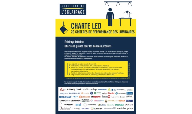 Les 20 critères de la Charte LED permettent d’identifier un produit responsable et fable, mais aussi de fournir un outil de prescription objectif à l’ensemble des professionnels de la filière. Apporter de la connaissance et de la confiance à tous les acteurs du secteur, offrir aux utilisateurs le référentiel avec lequel ils pourront en toute indépendance mieux définir les exigences propres à leurs activités, donner lieu à des cahiers des charges mieux rédigés, des projets d’éclairage mieux maîtrisés, devrait à terme faire progresser le niveau de qualité des installations d’éclairage intérieur dans notre pays. Cette charte est un référentiel unique destiné à tous qui marque la forte volonté des fabricants d’offrir au marché un cadre transparent et équitable. Comme il y a quelques années avec la « Convention pour la conformité aux normes des luminaires », où il ne s’agissait alors que de respecter les exigences de sécurité, le syndicat est fidèle à sa politique de partenariat et envisage d’amener les organisations représentant la prescription, la distribution et l’installation de solutions d’éclairage à s’associer à cette charte.