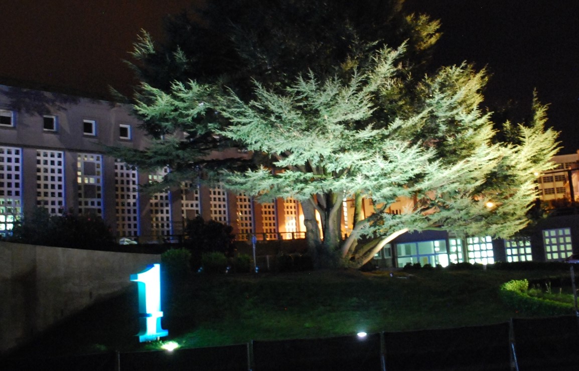 « C’est en suivant les propositions de réaménagements de l’Atelier de l’île que le projet s’est construit. Aux considérations urbaines et architecturales se sont ajoutées nos propres réflexions sur le rôle que la lumière pouvait jouer pour apporter un certain réconfort avant de pénétrer dans les bâtiments eux-mêmes », précise Soizick Bihen. Ainsi, à l’extérieur même de l’hôpital, les arbres remarquables qui marquent l’entrée, un cèdre et un épicéa majestueux, bénéficient d’un éclairage réalisé par des encastrés aux iodures métalliques en 4 000 K, complété par des appareils à LED en 3 000 K. Par ailleurs, le site péchait singulièrement par manque de signalétique, rendant difficile l’orientation des automobilistes à l’intérieur de l’enceinte de l’hôpital. Pour y remédier, l’agence de graphisme Téra-création a conçu des numéros de bâtiment de 1,50 m à plus de 2 m de haut et dotés d’un code couleur qui permet d’identifier chaque bâtiment. Soizick Bihen a, là encore, pris le parti d’un éclairage à base d’encastrés aux iodures métalliques de 4 000 K. La conceptrice lumière a souhaité donner à l’ensemble du projet une note colorée et animée pour réveiller ces espaces qui demeuraient à la fois glauques et gris, tant en ce qui concerne l’aspect du bâtiment lui-même que les chaussées. Les escaliers intérieurs des bâtiments 1 et 3, par exemple, seront éclairés de l’intérieur, livrant à la nuit par transparence une lumière à changement chromatique doux et lent, de 21 h à minuit, et visible de loin. « L’utilisation de la couleur est venue d’une suggestion de la maîtrise d’œuvre ; le centre hospitalier est configuré comme une petite ville, mais sans ses attraits : tout y apparaissait terne, voire austère, avec ces masses grises architecturales qui se dressaient la nuit sans qu’il soit possible de les distinguer les unes des autres. »