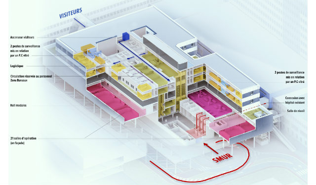 J. L.-B. – La mise en œuvre d’un processus BIM apporte beaucoup d’avantages pour les différents partenaires de la réalisation d’un bâtiment, en premier lieu pour le maître d’ouvrage. Tout d’abord, le respect du programme et la structuration des données. La gestion de ceux-ci, à l’image d’une vraie base de données, permet de mieux contrôler la validité et l’unicité de la donnée. L’avatar numérique ou jumeau numérique permet une plus grande aide à la décision, par la constitution de multiples variantes et donc une meilleure maîtrise des coûts. Cette démarche permet également une meilleure communication avec le maître d’ouvrage, car ce dernier a à sa disposition un avatar 3D, qui lui permet de mieux comprendre son projet, notamment par l’utilisation d’images et de vidéos. Il lui permet également de donner un meilleur aperçu du projet aux utilisateurs finaux et aux différents partenaires par l’utilisation, soit de la réalité virtuelle soit de salle immersive « cave » permettant une immersion totale dans la maquette numérique. Lors de la phase de conception, le BIM améliore la communication entre les équipes de la maîtrise d’œuvre grâce à une meilleure coordination. Auparavant, en 2D, le travail se structurait par un découpage lié aux livrables, nous travaillions indépendamment sur le plan, la coupe et l’élévation. Aujourd’hui, nous modélisons et réalisons la maquette numérique d’une façon plus en lien avec la réalité constructive du bâtiment : la personne en charge de la façade travaille sur la conception de celle-ci en aillant une vision globale du sujet à la fois sur la façade en plan, en coupe et en élévation. Les maquettes numériques remises aux entreprises passent par une première série de présynthèses effectuées par la maîtrise d’œuvre. Les avantages pour les entreprises et de façon plus générale pour le chantier sont donc liés en premier lieu à une meilleure synthèse du projet et à un travail plus précis de la cellule de synthèse. Dès le début de la phase chantier, les entreprises constituent les maquettes numériques du futur DOE BIM, qui sera livré au maître d’ouvrage. Il s’agira donc des DOE de l’avatar numérique. Le BIM 4D que nous avons cité précédemment apporte une meilleure planification du chantier permettant également de rassurer le client sur le déroulement de son chantier. La mise en place de plateformes collaboratives BIM permet également une meilleure coordination de celui-ci et une traçabilité plus fiable de toutes les étapes. Le fait que la maquette numérique soit alimentée par l’ensemble des données géométriques et alphanumériques du bâtiment, de ses équipements et mobiliers offre également une aide précieuse pour les phases de maintenance et d’exploitation. De plus en plus, l’utilisation d’objets connectés tels que les capteurs ou « sensors », faisant le lien entre le jumeau numérique et le bâtiment réel, permettent un pilotage et une gestion précise de l’ensemble.