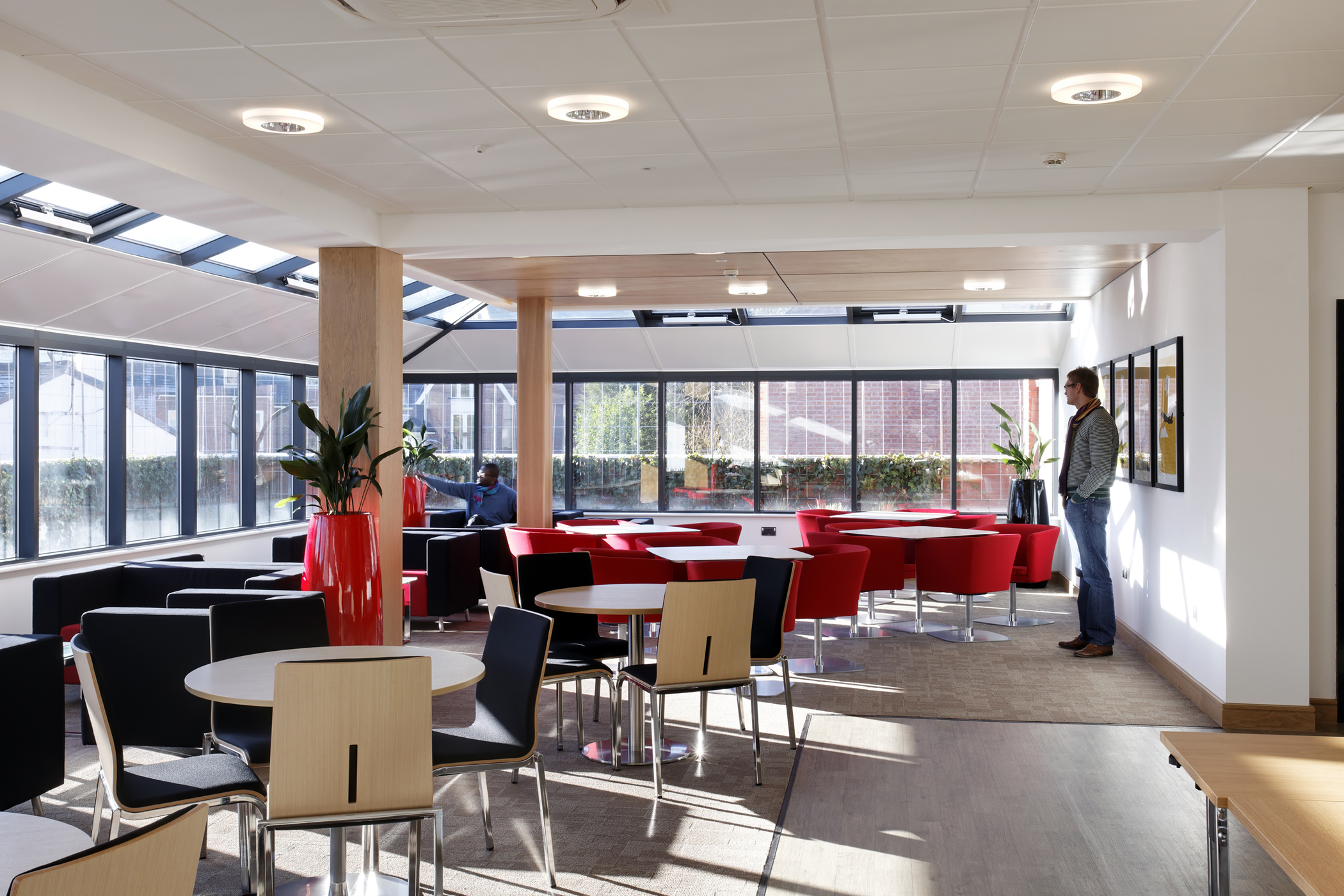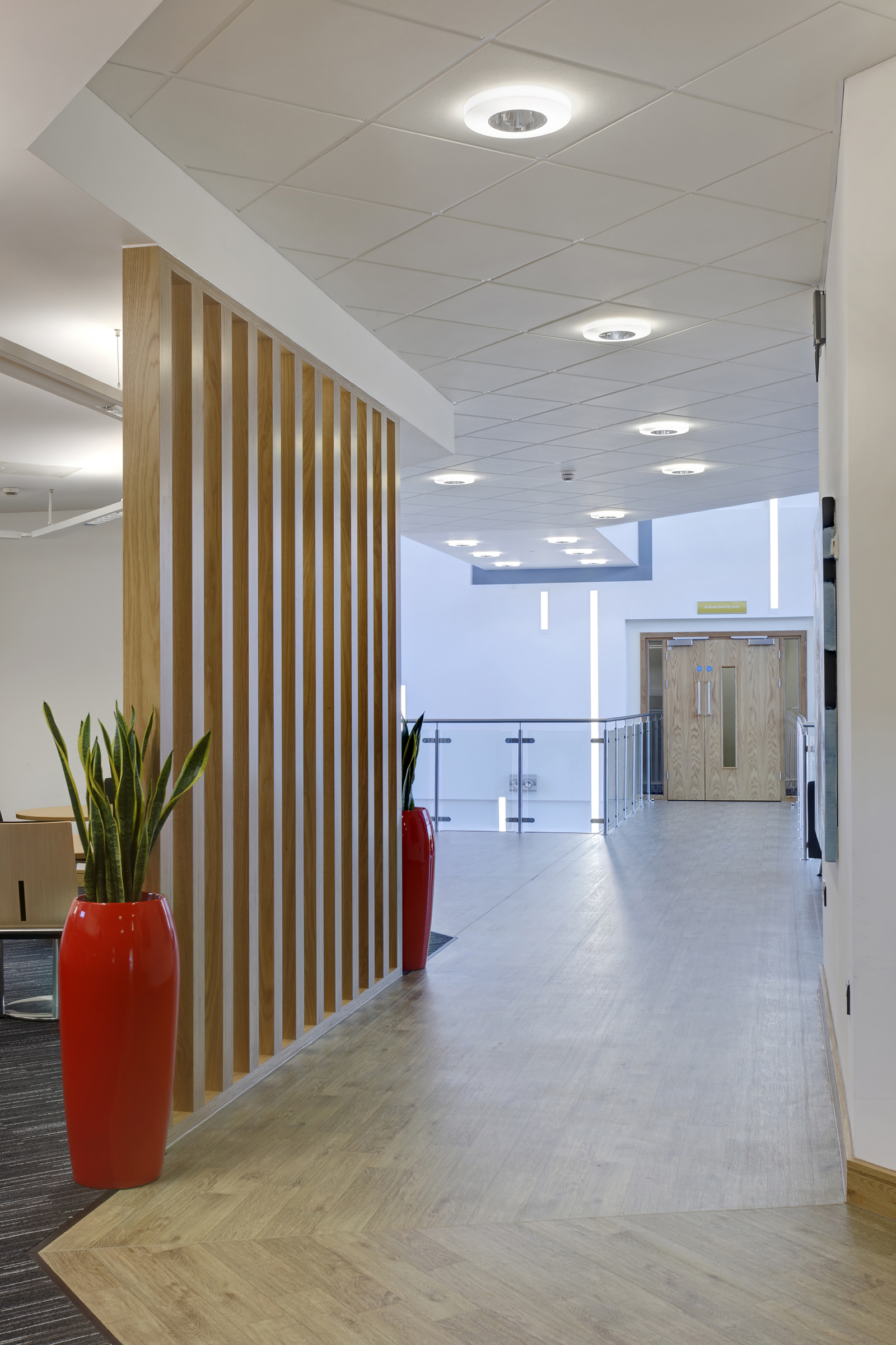 Afin de varier les ambiances et les options d’éclairage, Kometa 300 LED propose la fonction innovante de double allumage. L’utilisateur a ainsi la possibilité d’allumer indépendamment l’un des deux éléments, diffuseur ou réflecteur, ce qui lui garantit une flexibilité totale d’utilisation. Il peut désormais éclairer uniquement la surface souhaitée, sans perte d’énergie. Dans un hôpital par exemple, le double allumage serait utilisé le jour et l’ambiance seulement la nuit pour un éclairage de sécurité économisant la moitié de la puissance. Kometa 300 LED se décline aussi en version dimmable. Associé au variateur DALI de Sylvania, il offre diverses options de gradation pour une intensité de lumière réglable en fonction des besoins. Installé en saillie, il peut aussi être encastré dans les faux plafonds grâce aux accessoires proposés par Sylvania (dalle d’encastrement de 600 x 600 et cadre pour plaques de plâtre) pour un rendu doux et esthétique. Alliant un design circulaire inédit et des performances élevées, Kometa 300 LED présente un autre atout non négligeable pour les gestionnaires des établissements tertiaires sur les espaces de circulations ou de couloirs : une réduction des coûts de rénovation grâce à un niveau d’éclairement tout aussi efficace que des downlights, et ce, avec 30% d’appareils en moins.
