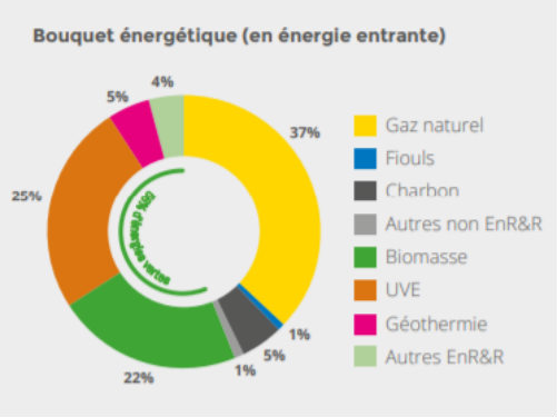 Dans le cadre de la transition énergétique, ces réseaux de chaleur et de froid, qui fonctionnaient à l’énergie fossile, sont aujourd’hui alimentés à 56 % par des énergies renouvelables issues de différentes sources : la récupération de la chaleur produite par les usines de valorisation et d’incinération des déchets, le « bois énergie » constitué de chutes et de copeaux de bois, la géothermie, la récupération de chaleur des industries, le biométhane, le gaz naturel, mais aussi le fioul et le charbon. Selon Guillaume Planchot, « la part des énergies renouvelables dans le mix énergétique des réseaux de chaleur a été doublée en 10 ans et cette tendance va s’intensifier dans les années à venir ».