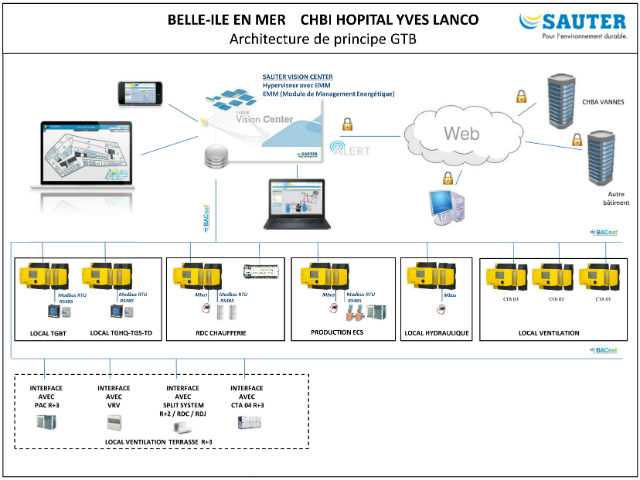 « Ainsi, nous sommes présents depuis 25 ans dans plusieurs structures hospitalières, et encore tout récemment pour des réalisations de régulations et lots CVC dans différents établissements de santé, Polyclinique Reims-Bezannes, Hôpital privé de Provence, ou encore du nouvel hôpital de Belle-Île-en-Mer. Dans ce dernier, avec un contexte îlien, la fiabilité, la robustesse et la pérennité des produits installés ont été des critères très importants. La compatibilité ascendante est également un point impératif, que cela soit au niveau régulation ou supervision, l’équipe locale de Belle-Île devant pouvoir répondre en autonomie aux dépannages d’urgence, même si le site, qui est raccordé à l’hôpital de Vannes, peut aussi être supervisé à distance », souligne Régis Briat, de Sauter Régulation France.