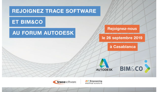 Trace Software International annonce sa participation au Forum Autodesk qui se tiendra à Casablanca au Maroc le 26 septembre 2019. Trace Software International, éditeur de logiciels pour l’ingénierie électrique, et sa société sœur BIM&CO, plateforme leader des objets BIM, assisteront à l’événement en tant que conférenciers.