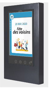 Robuste et design, cette nouvelle génération d’écrans Intratone affinés se décline en trois tailles (15, 21 pouces et 2 x 21 pouces pour la version “double écran”). Au service de la diffusion d’informations instantanées en direction des habitants, ils vont plus loin puisque ces écrans sont dotés de boutons et d’un lecteur de badge. Les habitants de la résidence peuvent ainsi faire défiler les pages d’informations et balayer les diverses actualités de leur immeuble, affichages obligatoires compris. lls pourront également répondre à un sondage, s’inscrire à un événement, tel que la fête des voisins ou encore l’Assemblée Générale de la copropriété.