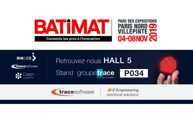 Trace Software International, acteur majeur du marché des logiciels et services pour l’ingénierie électrique et photovoltaïque, annonce sa participation au salon Batimat qui aura lieu du 4 au 8 novembre 2019 à Paris, Parc des expositions de Villepinte. Batimat est le salon de la construction et de l’architecture le plus important au monde avec plus de 1700 exposants français et internationaux, plus de 270 000 visiteurs attendus et une centaine de conférences techniques et stratégiques.