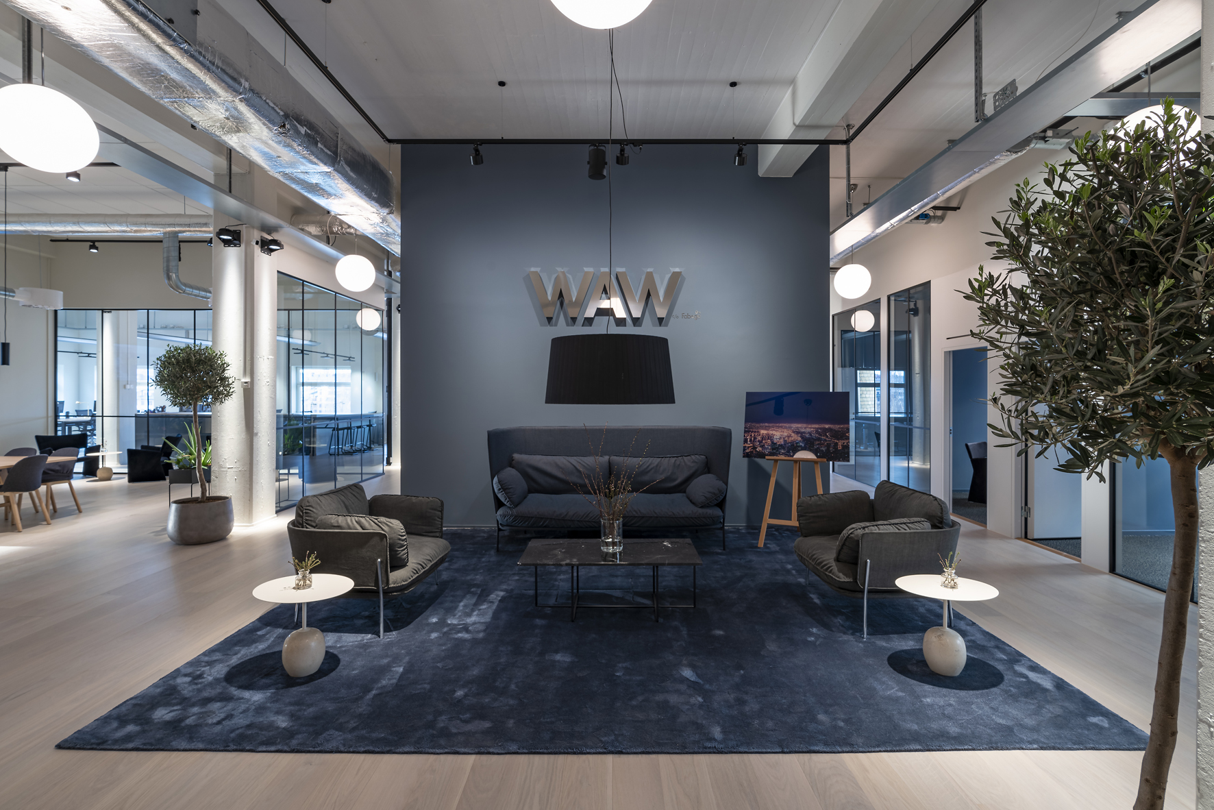 Chaque site WAW a son caractère propre. Situé au nord de Stockholm, le site WAW Arenastaden est un espace de travail de type loft occupant deux étages, propice au travail concentré et à d’agréables échanges autour d’un feu de cheminée. Le site Inner City se trouve dans le centre-ville, à environ 450 m de la gare centrale. Son style lounge invite à s’y rassembler pour des réunions d’affaires ou des brainstormings créatifs entre collègues. Au sud de Stockholm, le site WAW Hammarby Sjöstadt occupe un bâtiment historique placé sous le signe de la lumière : des lampes y ont été fabriquées depuis les années 30 jusqu’aux années 70 dans ce qui était alors l’usine Luma. Aujourd’hui, on y travaille avec l’éclairage ERCO basé sur la technologie LED la plus récente.