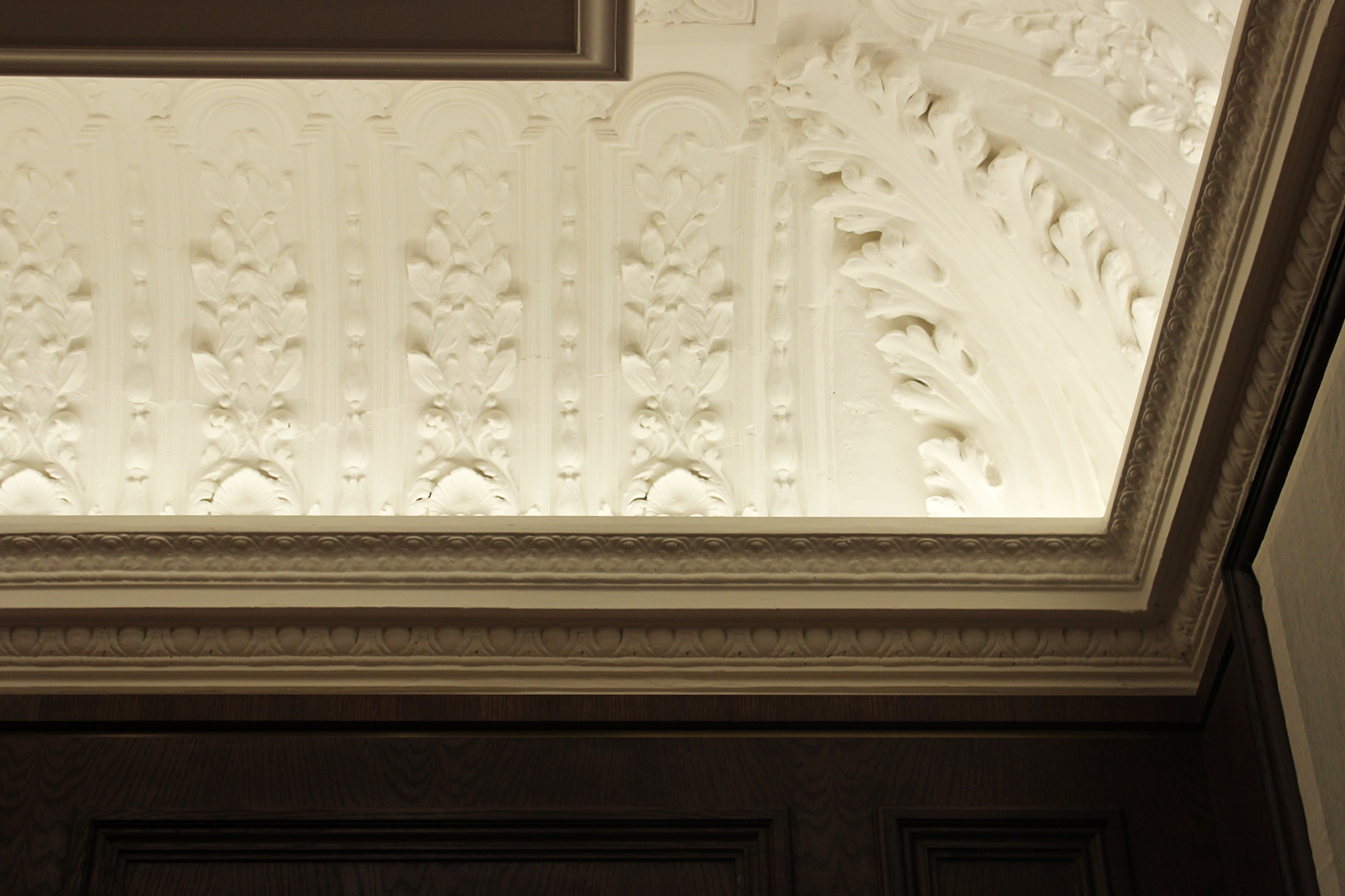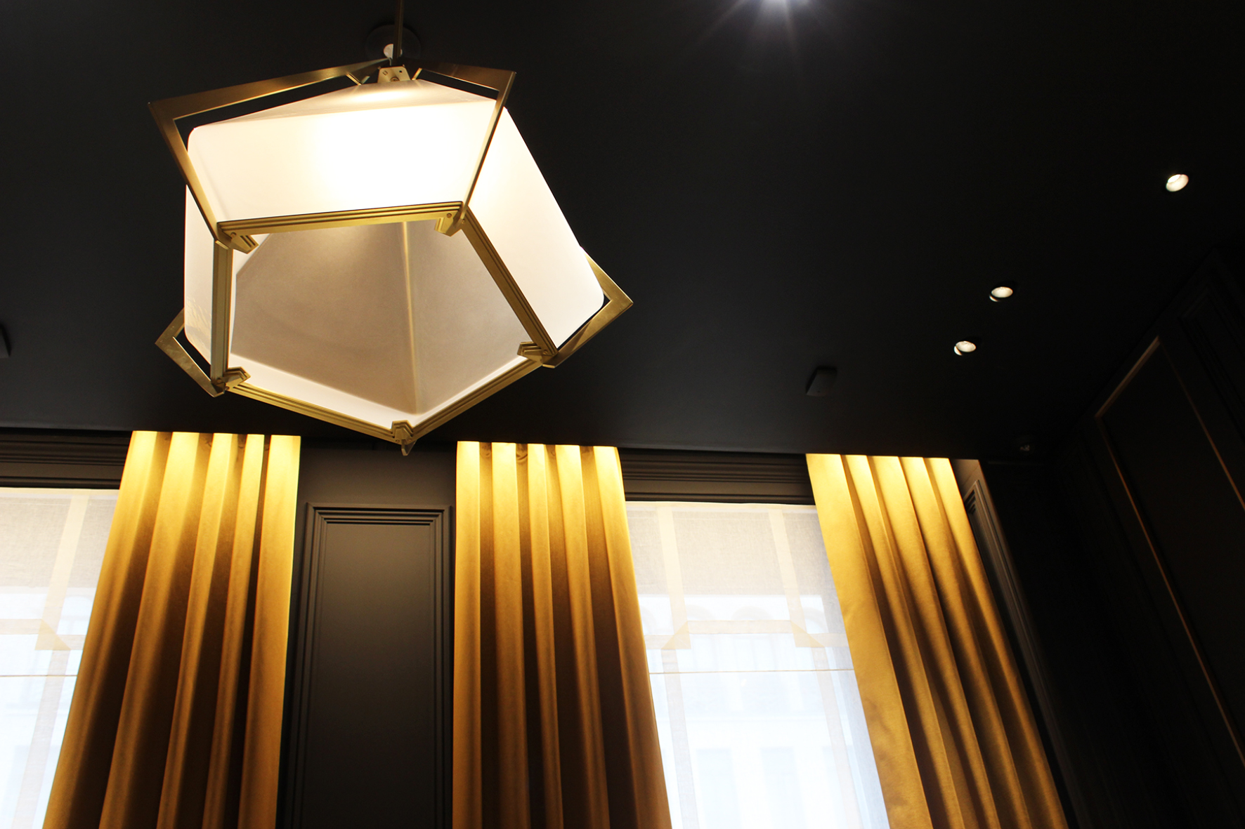 Le bâtiment, classé, devait conserver intactes boiseries, corniches et moulures des plafonds qui culminent parfois jusqu’à 4,50 m de haut. « La volumétrie des espaces étant assez grande, nous avons joué sur les nuances de couleurs, avec tout d’abord la lumière naturelle qui pénètre par les fenêtres hautes, une température de couleur chaude de 3 000 K, des éclairages indirects en corniche, le tout gradable afin de pouvoir régler l’intensité en fonction de la volumétrie des espaces et des heures de la journée », explique Clémence Vitrac.