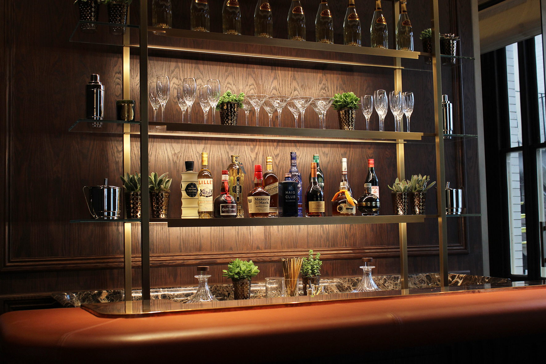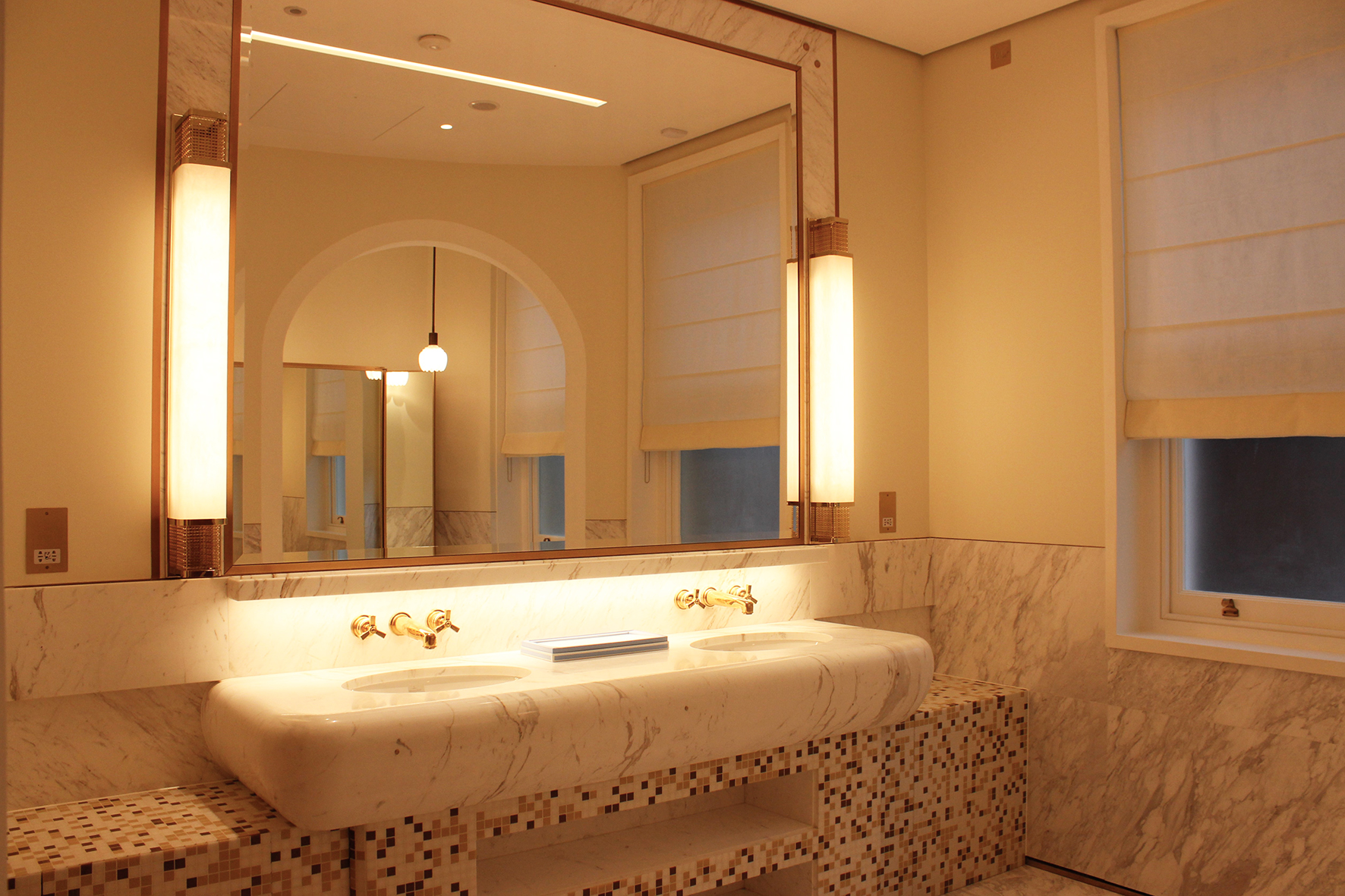La lumière joue constamment avec la matière sans que le client voie d’où elle provient. Des spots encastrés en partie basse ou partie haute complètent cet éclairage. Pour apporter encore davantage de confort aux clients, tous les éclairages, hormis ceux des mobiliers, sont gradables. Divers scénarios sont mis en scène, espace par espace, afin de créer des ambiances lumineuses en fonction des heures de la journée.