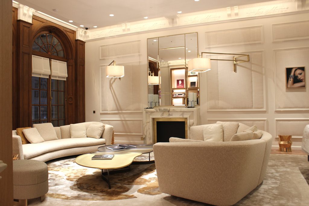 Fondée à Paris en 1847 par Louis-François Cartier, la Maison ouvre sa première boutique à l’étranger à Londres et tisse très vite des liens privilégiés avec la couronne, qui fera dire à Édouard VII de Cartier qu’il « est le joaillier des rois et le roi des joailliers ». La rénovation du bâtiment a été confiée à l’architecte Bruno Moinard, agence 4BI, fidèle à la marque de luxe depuis plus de 20 ans, qui a créé un décor sobre et raffiné, plongé dans des ambiances à la fois élégantes et chaleureuses, accompagnées de lumières signées par l’agence Ponctuelle, avec pour chef de projet, Clémence Vitrac, architecte d’intérieur, conceptrice lumière.