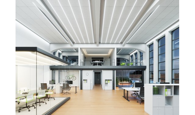 Le Panel Direct/Indirect 1200 de LEDVANCE fournit 70 % de lumière directe (jusqu’à 2 800 lm) et 30 % en indirect (jusqu’à 1 200 lm). Le diffuseur PMMA microprismatique permet une distribution lumineuse homogène et offre un indice d’éblouissement inférieur à 19 (UGR < 19). Par ailleurs, ces luminaires n’engendrent que de faibles coûts de maintenance et d’exploitation, grâce à une bonne efficacité lumineuse allant jusqu’à 110 lm/W et une durée de vie de 80 000 h (L70/B50). De plus, l’alimentation est intégrée dans la patère, ce qui facilite le remplacement en cas de maintenance. Les luminaires Panel 1200 Direct/Indirect sont également disponibles en version DALI. Ils sont garantis 5 ans. Les fils d’acier de suspension (1,50 m) permettent de positionner le luminaire à la hauteur souhaitée.