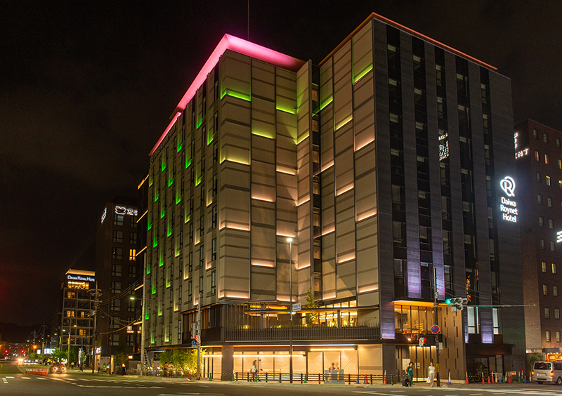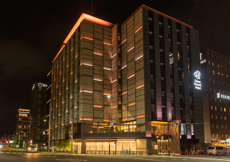 En février 2020, la chaîne Daiwa Roynet ouvre son troisième hôtel (après Ariake et Kyoto) pour lequel I.C.O.N. a été sollicité pour créer l’éclairage extérieur et apporter son expertise sur l’intérieur.