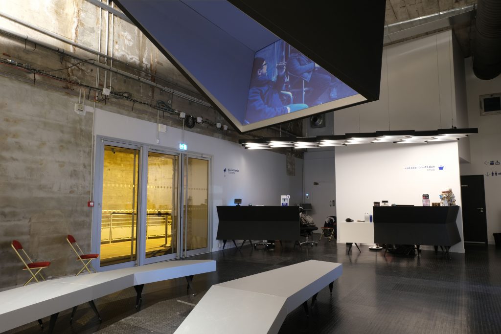 L’objectif principal était de rendre l’attente vers les espaces d’exposition et la visite du sous-marin limitée à 65 personnes plus confortables pour les visiteurs – l’attente peut parfois durer 2 h. « La lumière devait être très agréable à vivre, reprend Rozenn Le Couillard, tant pour le visiteur que pour le personnel d’accueil : en accord avec les architectes, nous avons défini des températures de couleur plutôt chaudes (3 000°K) et une lumière diffuse pour ne pas dramatiser l’espace mais en révéler les volumes, en particulier celui construit au-dessus de l’espace de vente. Un espace de projection de vidéo a été créé : la lumière est complétement maîtrisée à cet endroit pour faciliter le visionnage. »