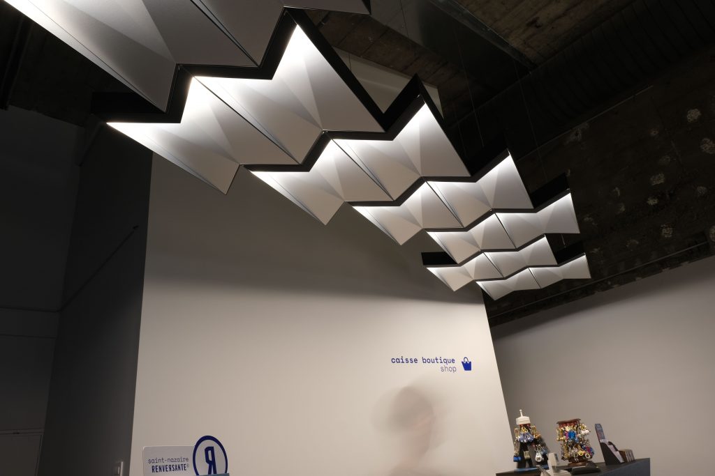 EOL et Espadon, situés dans la base sous-marine de Saint-Nazaire, sont totalement dépourvus de lumière naturelle. Les espaces de billetterie bénéficient d’un éclairage artificiel qui accompagne la plongée dans les profondeurs du sous-marin. Alliant la poésie des fonds marins à la technicité du site, la lumière guide, révèle les matières et les volumes, fait léviter cette nouvelle ombre régnant au-dessus des espaces billetterie des deux sites EOL et du sous-marin Espadon.