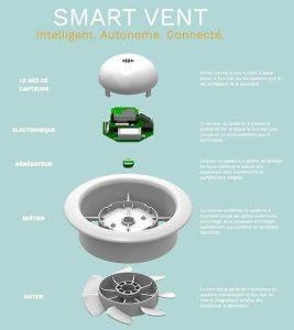 – un capteur de qualité d’air intérieur autonome qui prend la forme d’une bouche de ventilation à installer en lieu et place des VMC présentes dans les logements ;