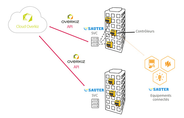Plateforme cloud permettant une communication sans fil à distance avec les équipements connectés : éclairages, stores, CVC (climatisation, ventilation, chauffage)