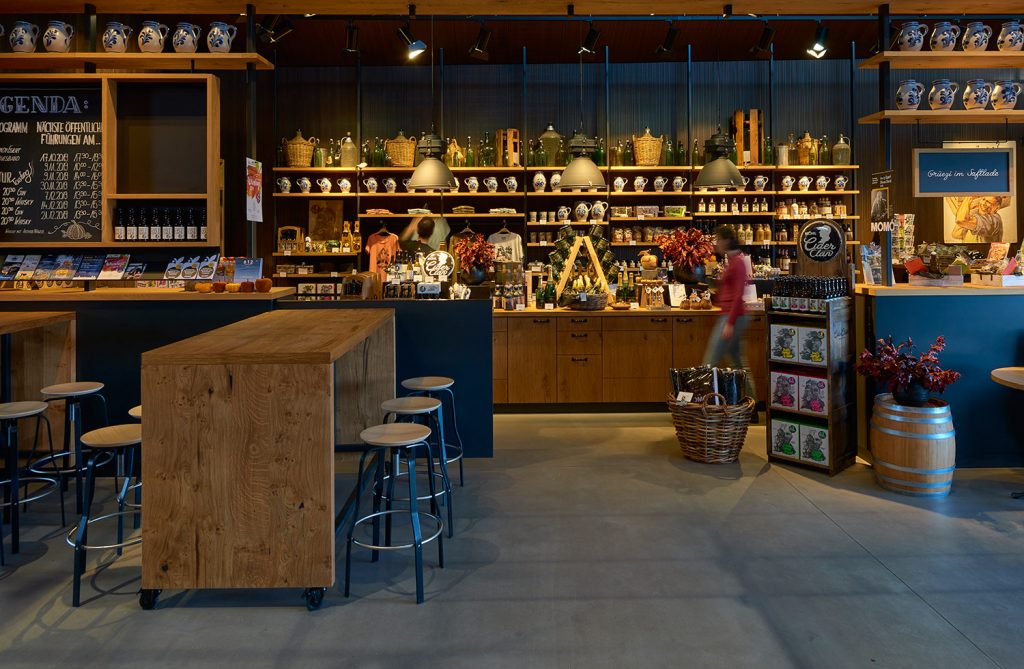 L’idée de conception du cabinet HarderSpreyermann pour le musée de la pomme, choisi par une commission de 2012, est un mix de grange traditionnelle et de bâtiment industriel moderne. L’utilisation du béton et la forme du toit en tôle tiennent un langage contemporain, alors que le sommaire revêtement en bois, disposé verticalement, renvoie aux bâtiments agricoles traditionnels de la région.