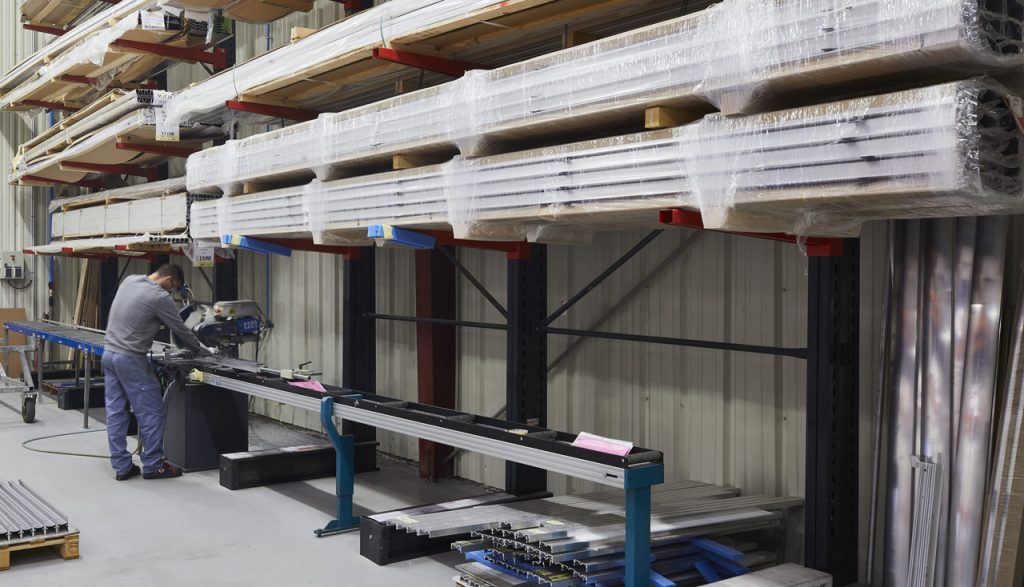 Le profilé est tout d’abord découpé aux dimensions du produit pour être ensuite ébavuré, c’est-à-dire nettoyé afin d’adoucir les arêtes de l’aluminium pour rendre la pièce propre au toucher. Deuxième étape, le centre d’usinage qui va, par traitement numérique, percer, perforer, ouvrir, opérer la masse métallique linéaire pour aboutir à une pièce semi-finie. Suit la confection d’embouts de finition qui ferment le produit aux extrémités. « Cette phase est essentielle pour créer une bonne étanchéité lumière afin d’éviter des fuites de lumière entre deux pièces assemblées », précise Julien Wantuch, responsable développement. La pièce ainsi soudée part à l’extérieur pour la phase traitement de surface (RAL 9003, 7015 et 7047 en standard). Après une semaine, le produit revient et passe dans le deuxième bâtiment pour le montage et le câblage.