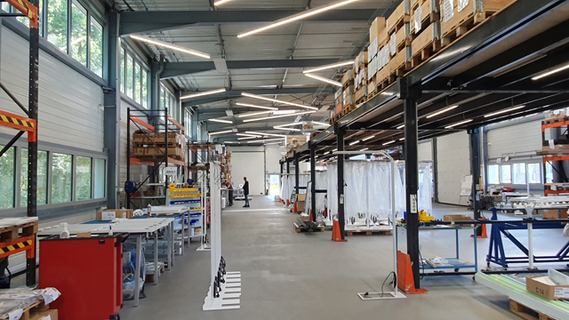 C’est dans ce bâtiment à peine sorti de terre que désormais s’effectue le montage : intégration de la LED, des drivers et, bien entendu, câblage se déroulent au cours de cette troisième semaine de fabrication. Ici sont stockés les produits finis en attente d’être livrés sur rendez-vous. Radian dispose d’un service extérieur spécifique proposé par une société indépendante qui accompagne les clients lors de la mise en œuvre des produits.