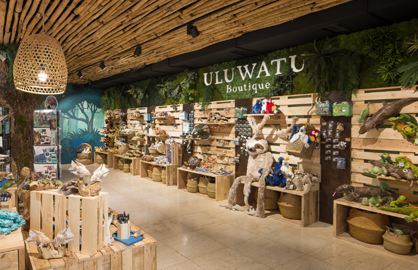 Les visiteurs du parc de Beauval y passent généralement toute la journée et il est primordial que les espaces dédiés au repos et à la restauration apportent le bien-être attendu. À la périphérie du dôme et ouvert sur la végétation, le restaurant dispose de petites tables rondes et chaises colorées éclairées par des lampes décoratives à filament LED ToLEDo Retro, suspendues au plafond de bois clair et disposées dans des abat-jour de corde. « Dans les boutiques, précise Nuno Paroco, on retrouve l’association de dalles LED encastrées au plafond, créant des sortes de puits de lumière, et de différents modèles de projecteurs Concord Beacon à focales variables et à larges faisceaux, orientés vers les rayonnages et dotés d’un IRC élevé (entre 90 et 95). » Du côté des palettes-étagères, les projecteurs sont disposés dans les plafonds en bois flotté et accompagnés de façon aléatoire de suspensions équipées de lampes à filament LED ToLEDo Retro.